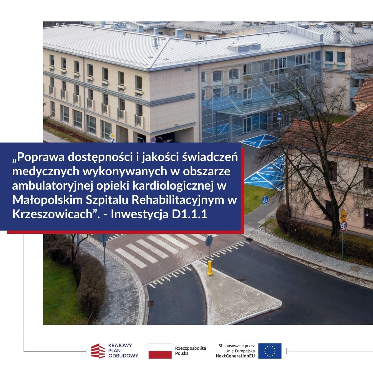 „Poprawa dostępności i jakości świadczeń medycznych wykonywanych w obszarze opieki kardiologicznej w Małopolskim Szpitalu Rehabilitacyjnym w Krzeszowicach”.